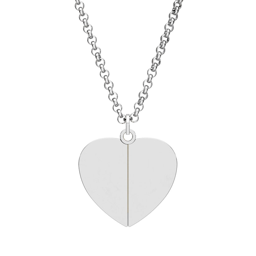 This sculptural heart pendant opens to reveal a hidden inner disc, allowing engraving on the outside and inside—one message shared, one kept just for you. Crafted for everyday wear, the piece balances sentiment with a clean, contemporary silhouette.