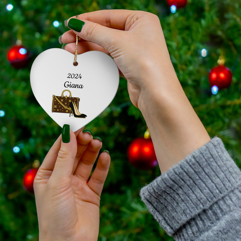 Personalisierter Weihnachtsschmuck aus Keramik | Schuhe & Handtaschen-Feiertagsglanz | 2025 | 4 Formoptionen