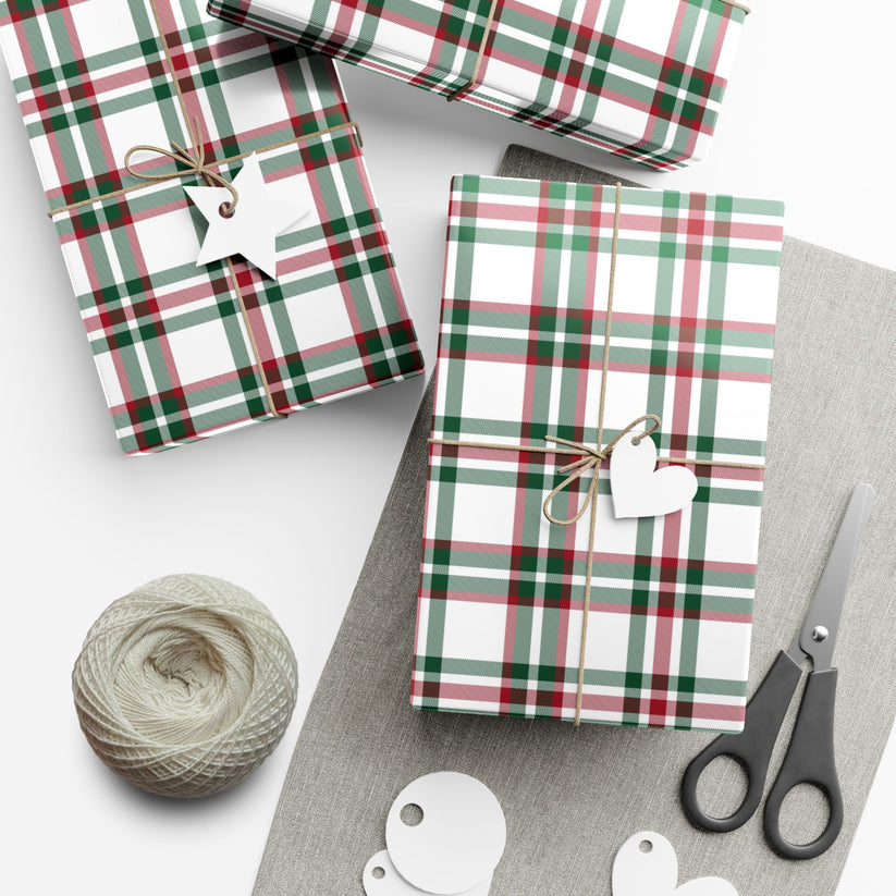Red, White & Green Plaid Wrapping Paper | Satin Finish | 3 sizes