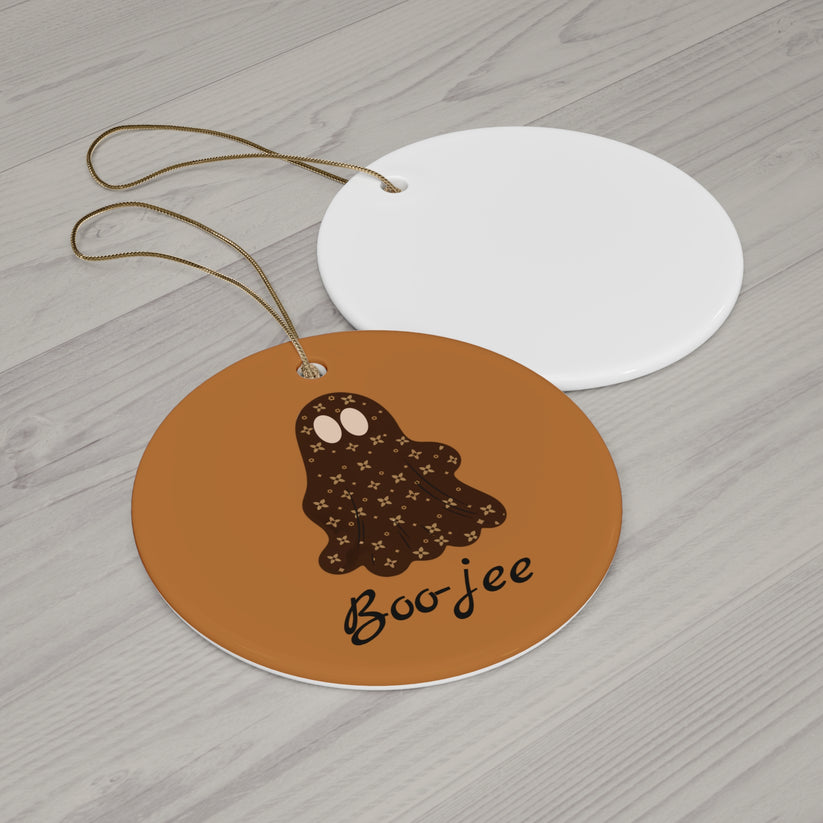 Rundes Halloween-Ornament aus Keramik | „Boo-jee“ Schickes Gespenst | 4 Farboptionen