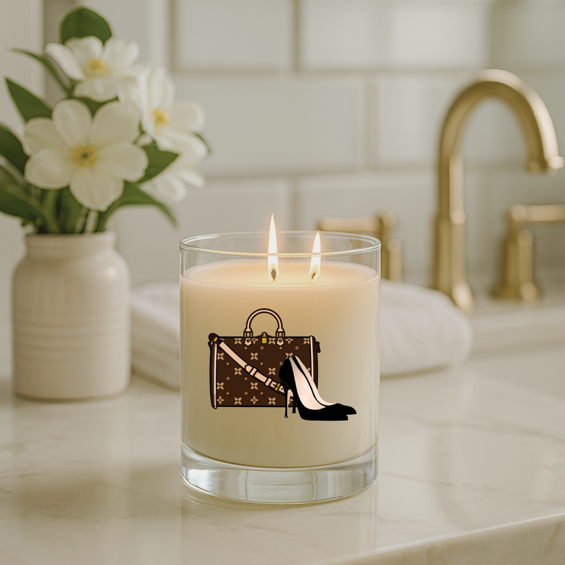 Dale un toque de elegancia a tu hogar con esta vela personalizable. Con nuestra exclusiva ilustración de tacones y bolso, esta vela es el regalo perfecto para los amantes de la moda o un toque chic para tu espacio.