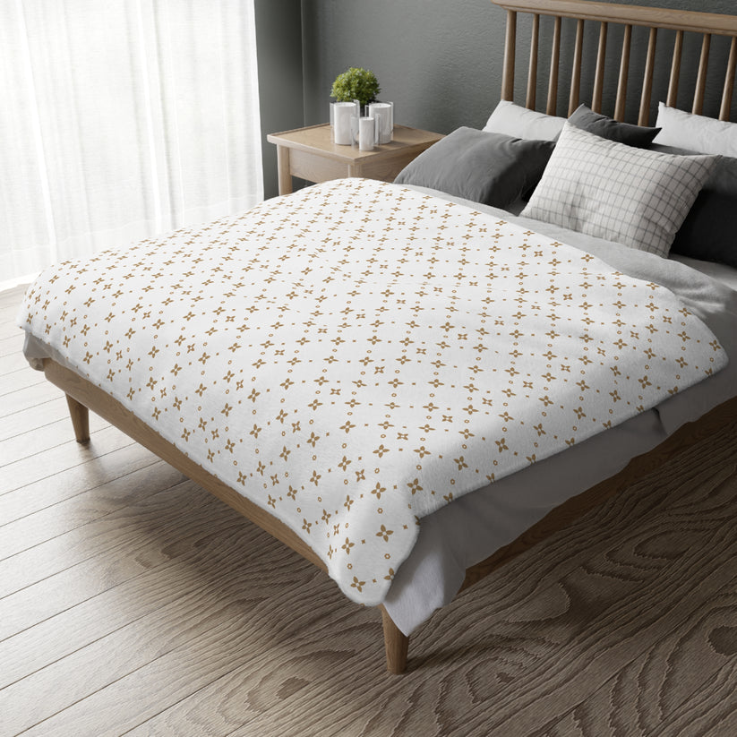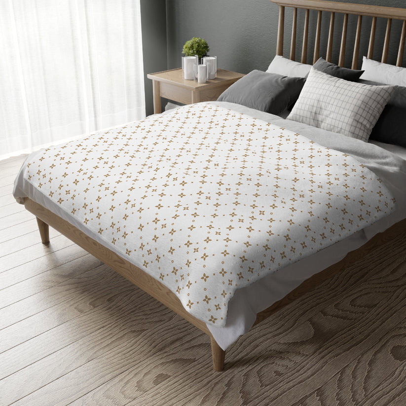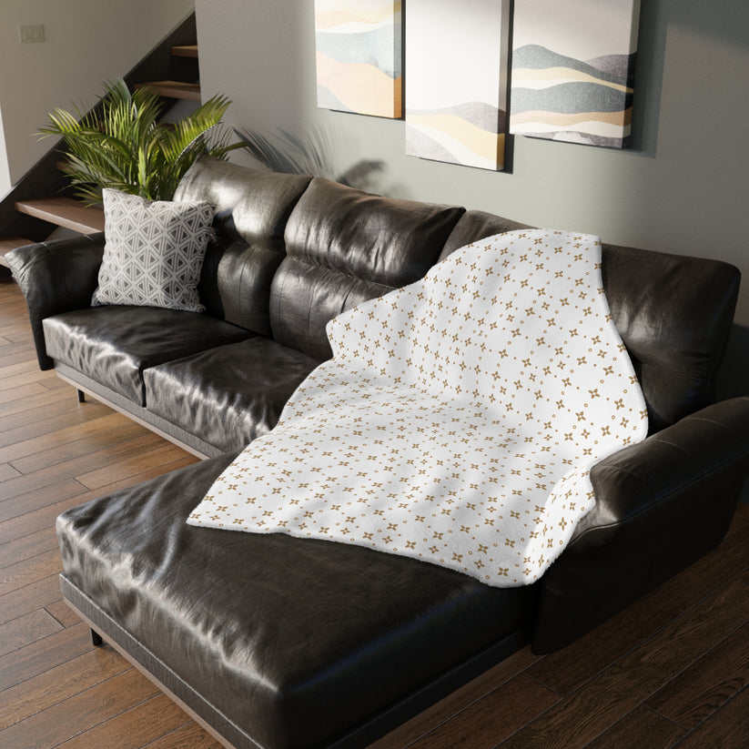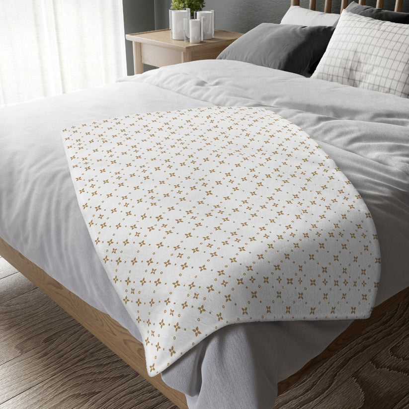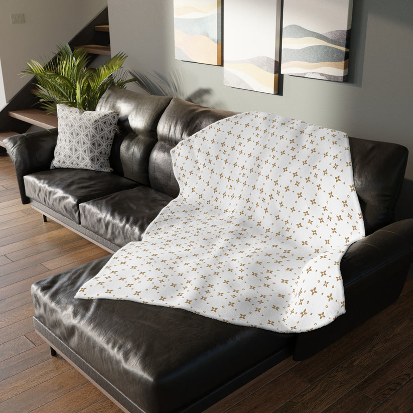 Manta de terciopelo | 3 tamaños | Impresión a doble cara | Blanco y caramelo | Patrón de sablette caramelo