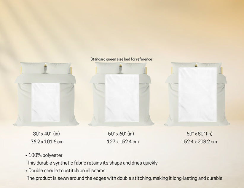 Impreso en ambos lados y hecho de poliéster 100% ultra suave, está disponible en tres tamaños generosos para adaptarse a cualquier espacio o situación de abrazo.