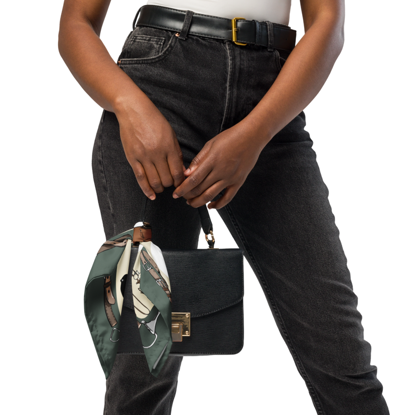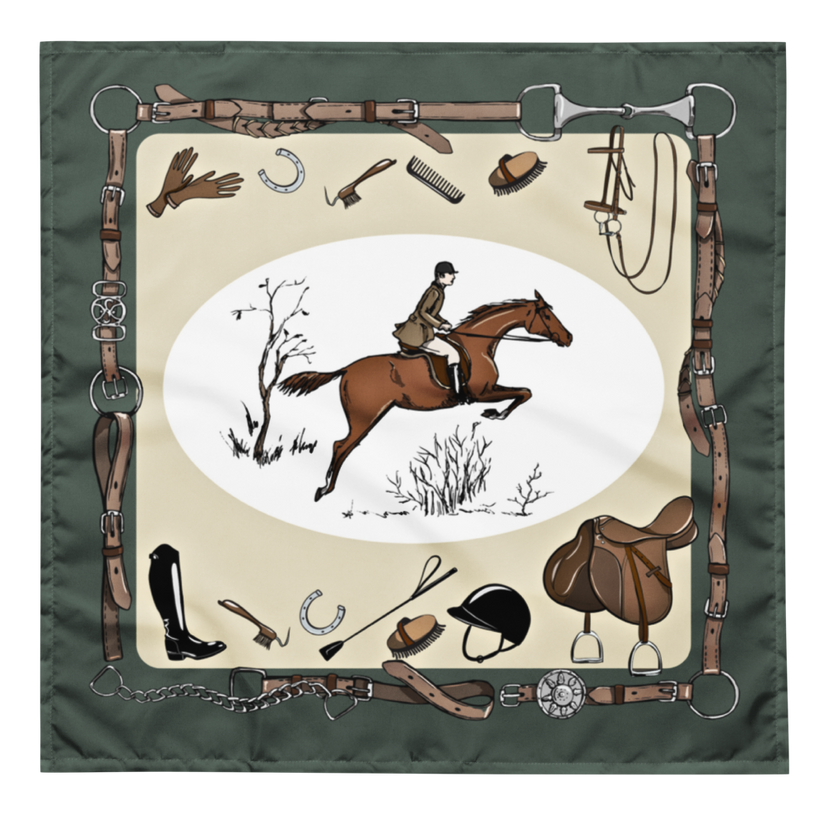 Elevate your look with the Modern Equestrian Scarf, a statement accessory designed for riders, horse lovers, and anyone who appreciates timeless equestrian style. Featuring an illustrated equestrian motif with bridles, saddles, boots, and more, this scarf is both functional and fashionable.