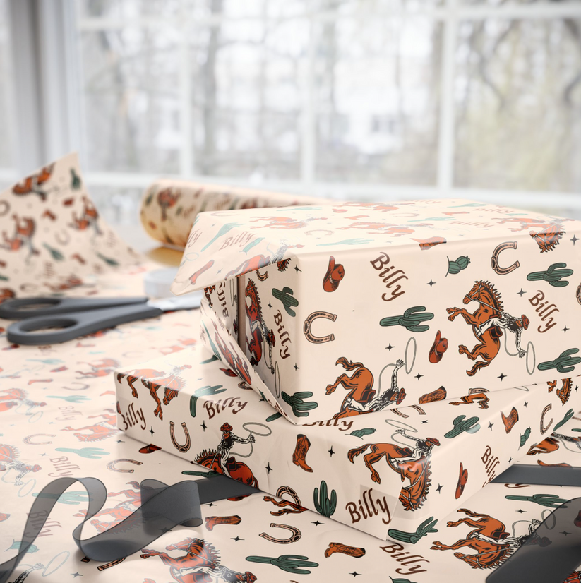 Whether wrapping a child’s birthday surprise, a western-themed gift, or something special for the cowboy or cowgirl in your life, this wrapping paper adds the perfect finishing touch.