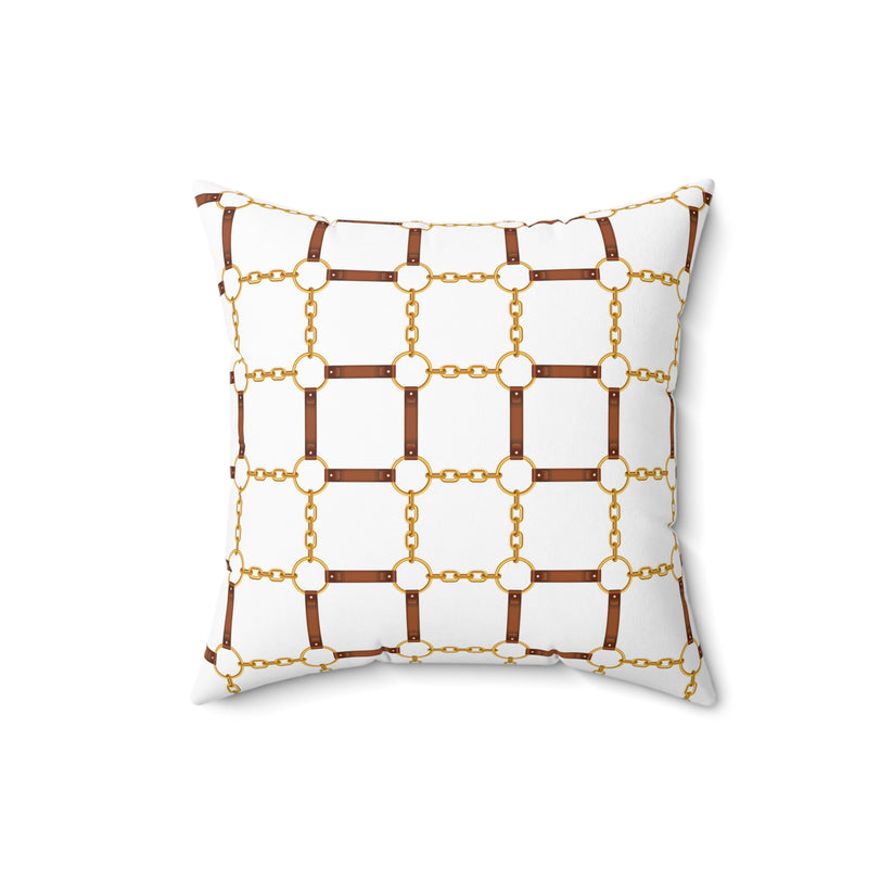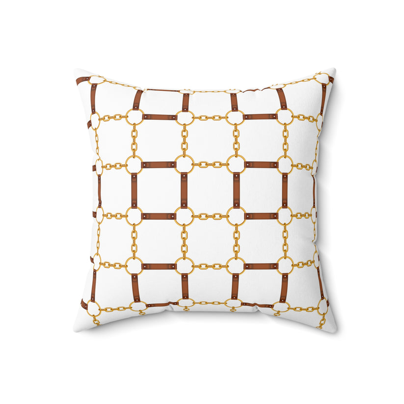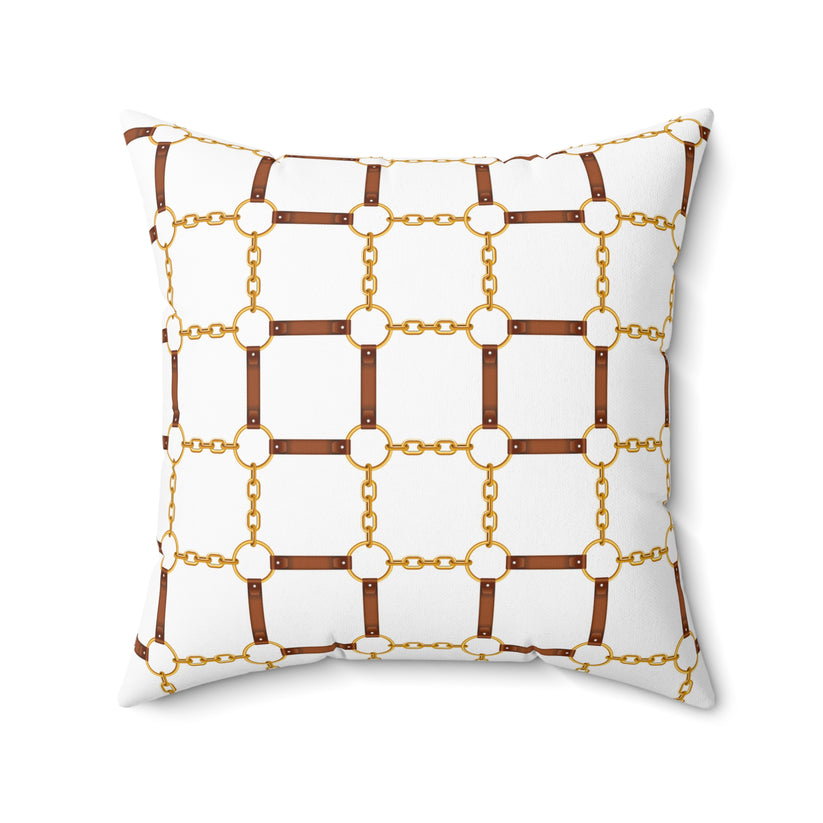 The Horse Tack Pillow Cover features an intricate print inspired by fine equestrian leatherwork, chain links, and bridle details — reimagined in a modern neutral palette for timeless appeal. A sophisticated nod to classic tack and saddle design — the perfect balance of equestrian tradition and modern style. Pair it with warm leathers, wool throws, or polished metals for a curated, upscale look.